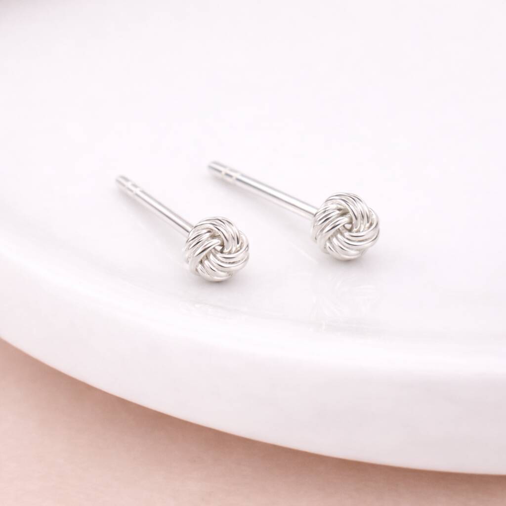 Sterling Silver Micro Love Knot Stud Earrings – 3mm
