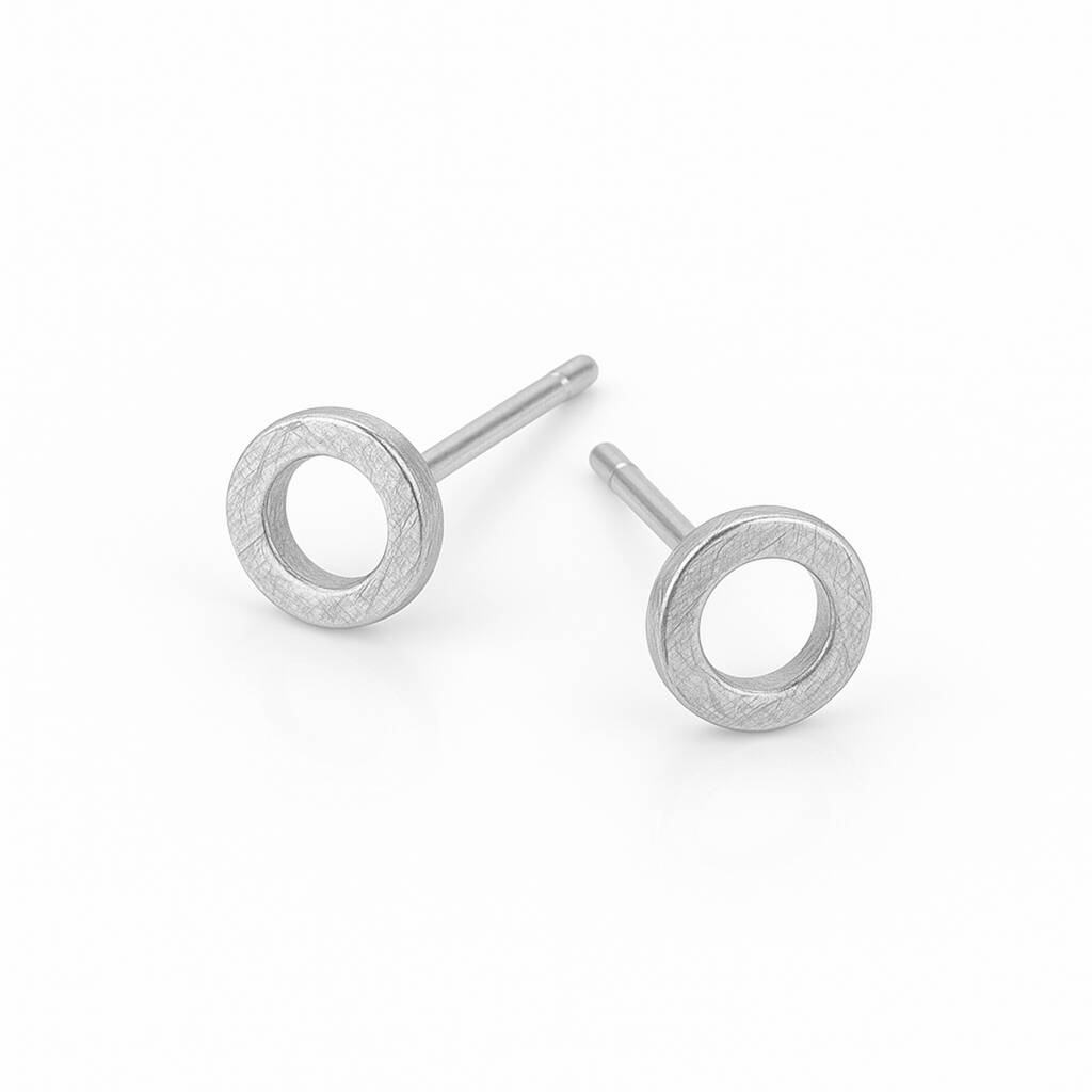 Sterling Silver Brushed Circle Stud Earrings – 5mm
