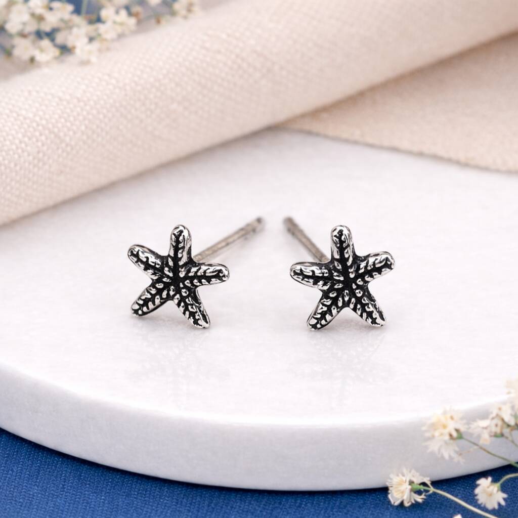 Oxidised Sterling Silver Starfish Stud Earrings – 5mm
