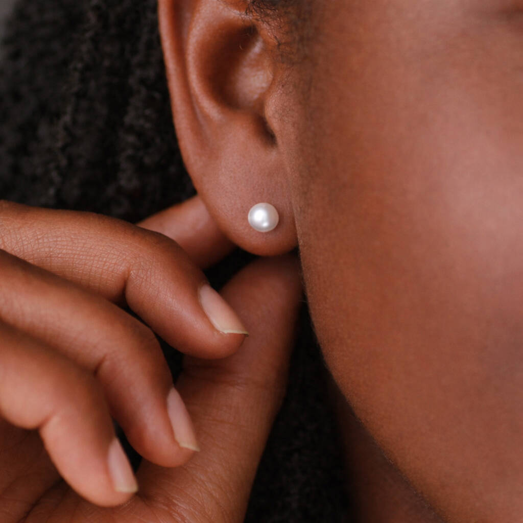 Sterling Silver White Freshwater Pearl Stud Earrings – 5mm