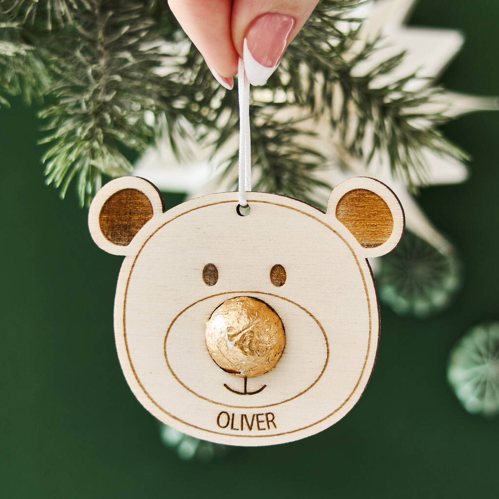 Personalised Bear Christmas Place Setting And Bag Of Chocolate Noses
