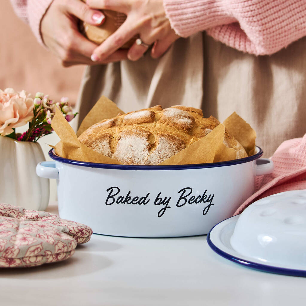 Give the ultimate gift with this personalised enamel baking tin, engraved to celebrate their yummy bakes. Our enamel baking tin is a sentimental and practical keepsake.
