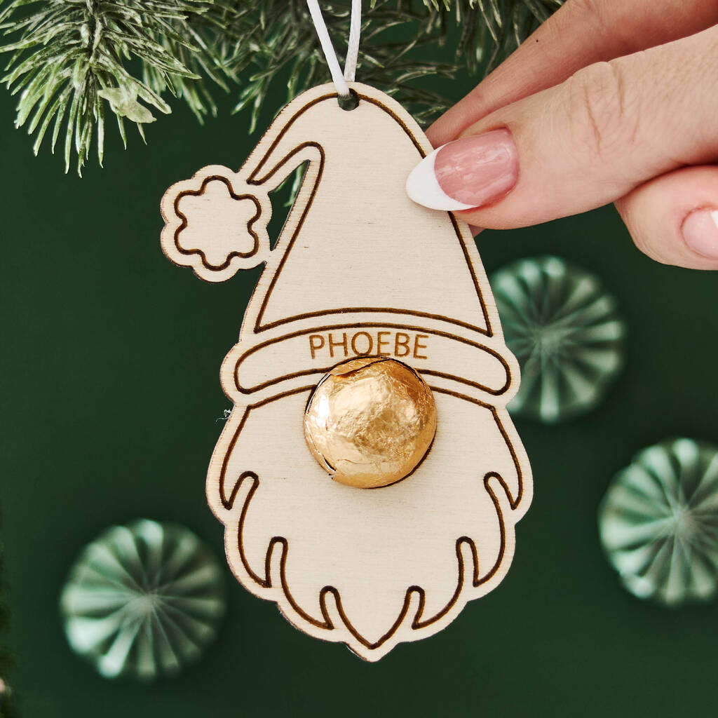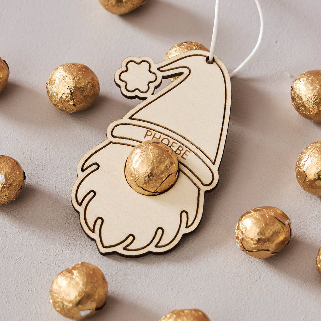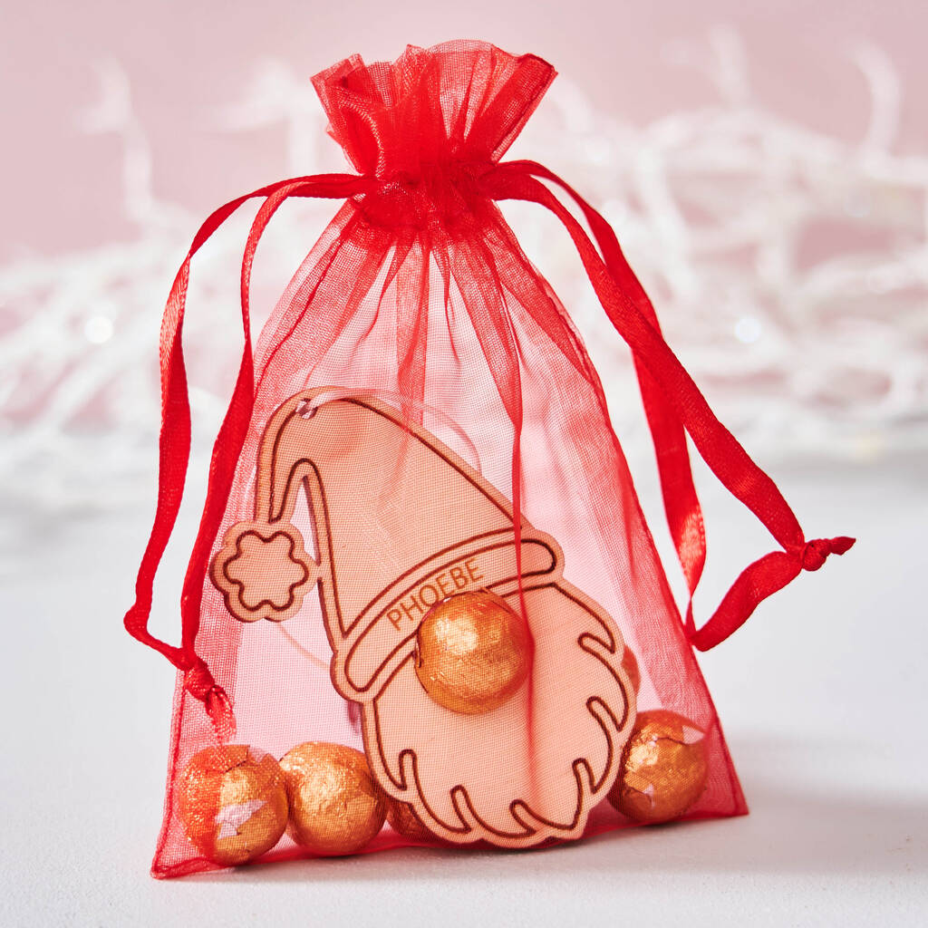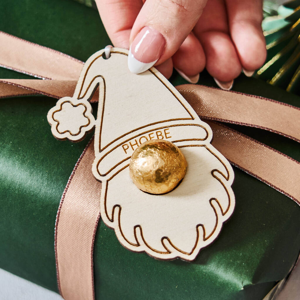 Personalised Gonk Christmas Gift Tag And Bag Of Chocolate Noses