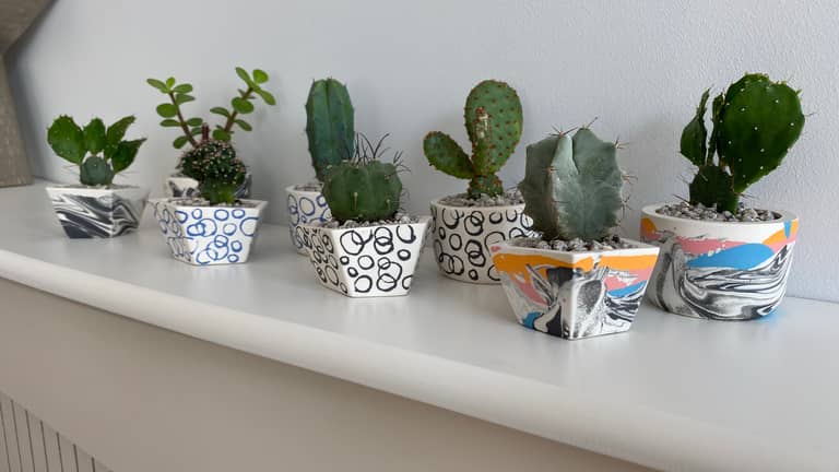 Sophie’s work is influenced by her love for colour, anything geometric and of course her obsession for plants - especially cacti. Sophie is based in Leicester where she works from her garage making each pot by hand. Her focus has been on surface design which has lead to her using techniques that makes each piece unique.
