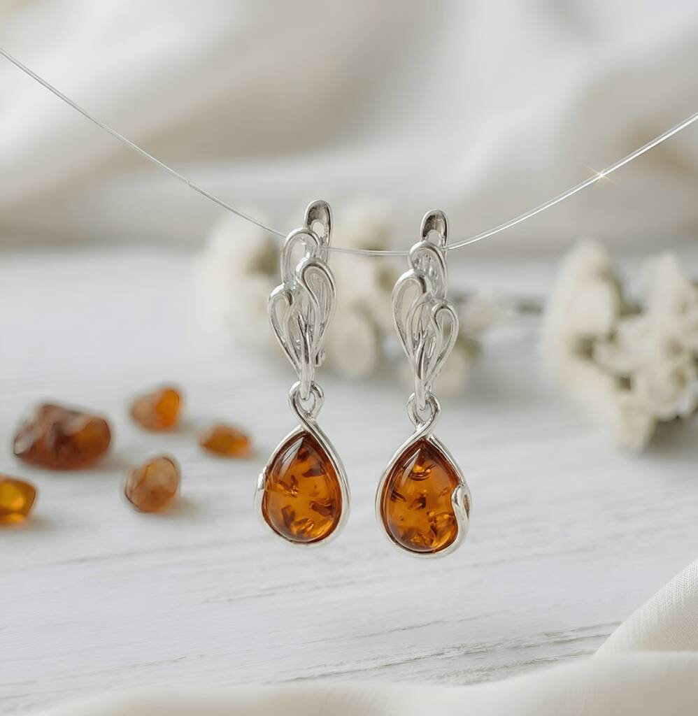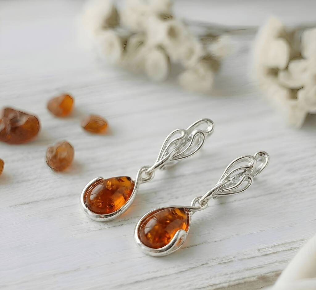Elegant Baltic Amber And Sterling Silver Drop Earrings