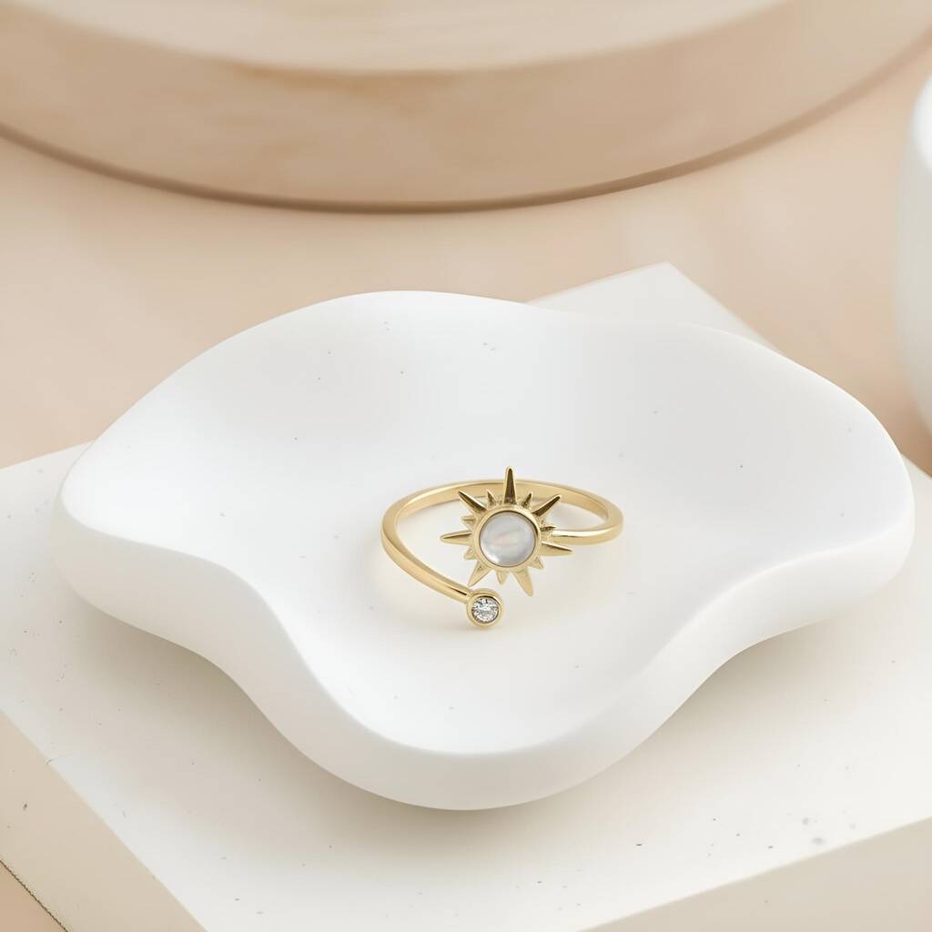Gold Plated Sterling Silver Sun Spinner Ring With Opal And Cz Adjustable, Open
