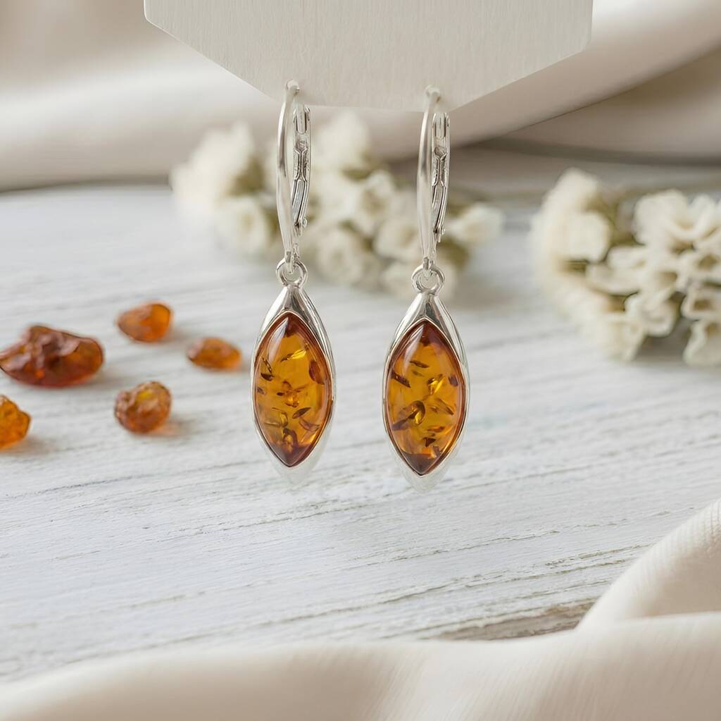 Handmade Baltic Amber Silver Dangle And Drop Earrings