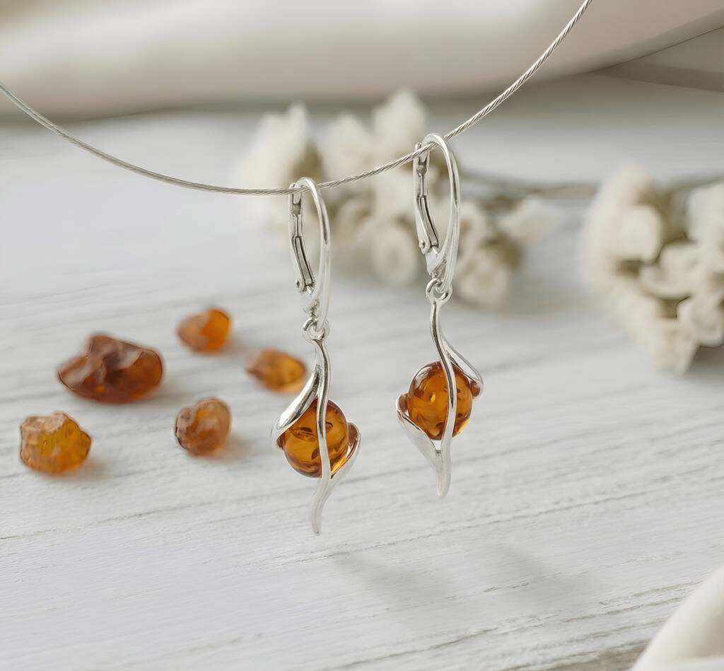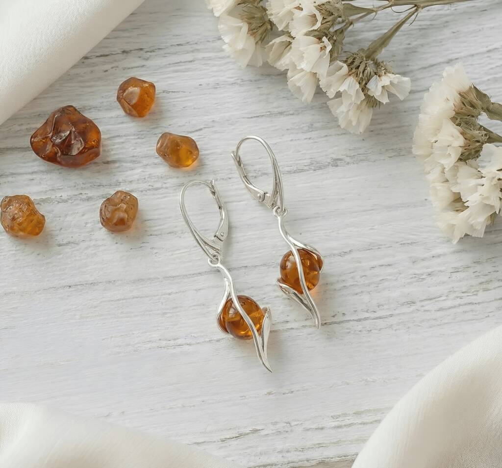 Handmade Baltic Amber And Sterling Silver Drop Earrings
