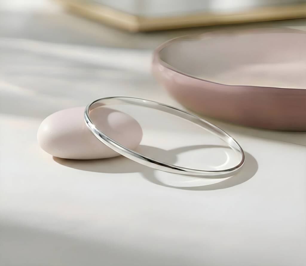 Elevate your everyday style with this handmade silver bangle. A timeless, polished accessory perfect for solo wear or stacking with your favourite bracelets.