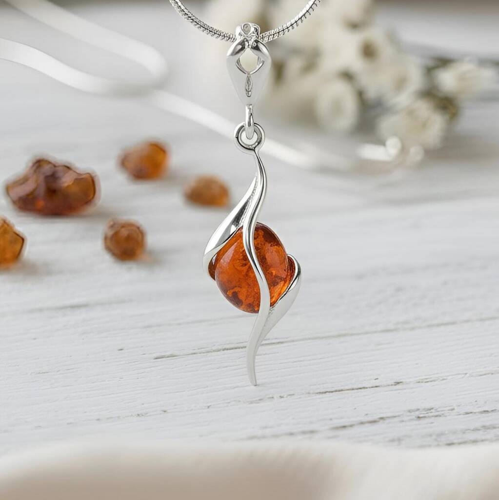 Handmade Sterling Silver And Cognac Baltic Amber Pendant