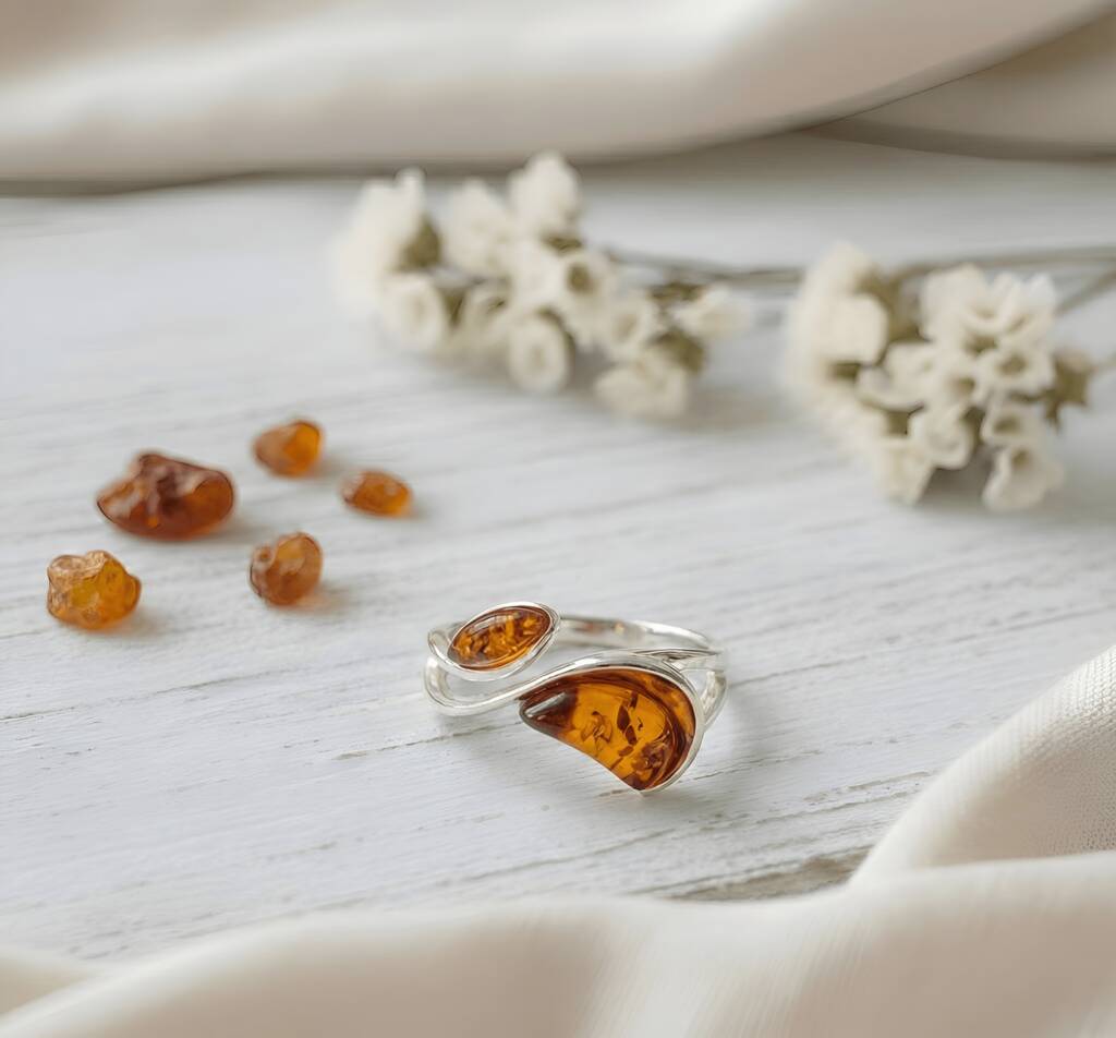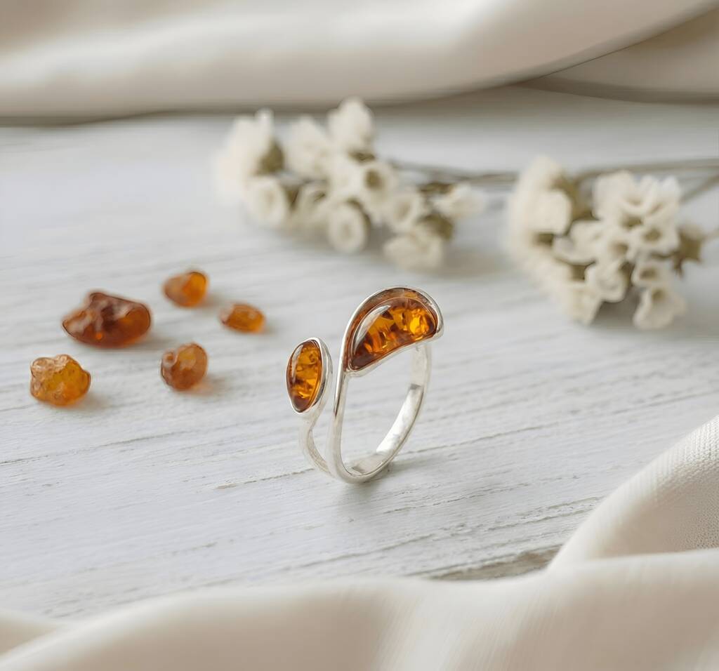 Modern Adjustable Baltic Amber And Sterling Silver Ring