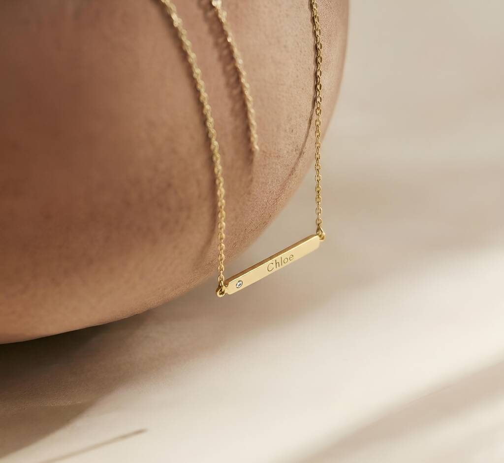 Personalised Gold Plated Sterling Silver Bar Initial Name Necklace