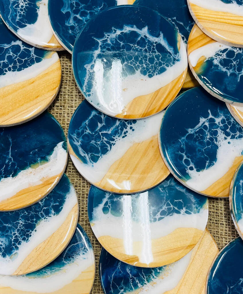 Ocean Seascape Resin Art Wood Coasters Set Two Or Four