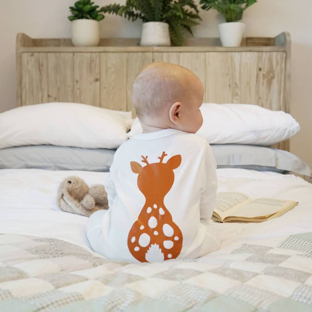 Our gorgeously soft fox sleepsuits feature our cute hand drawn fox. They make a great gift for your new baby, nephew, niece, godson, god daughter, grandchild for their birthday, Christmas, a baby shower, Easter, christening or birth! They are perfect for lovers of woodland animals.