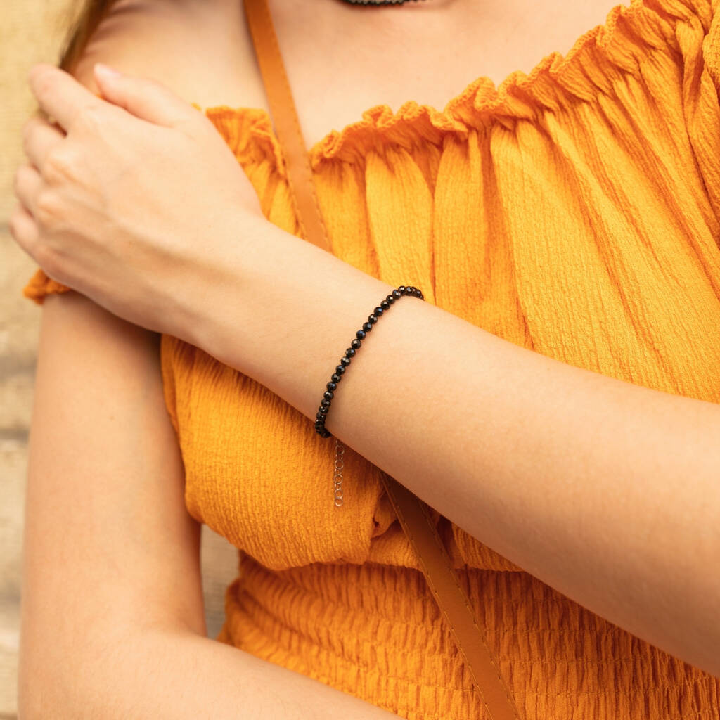 Sterling Silver Black Natural Spinel Bracelet