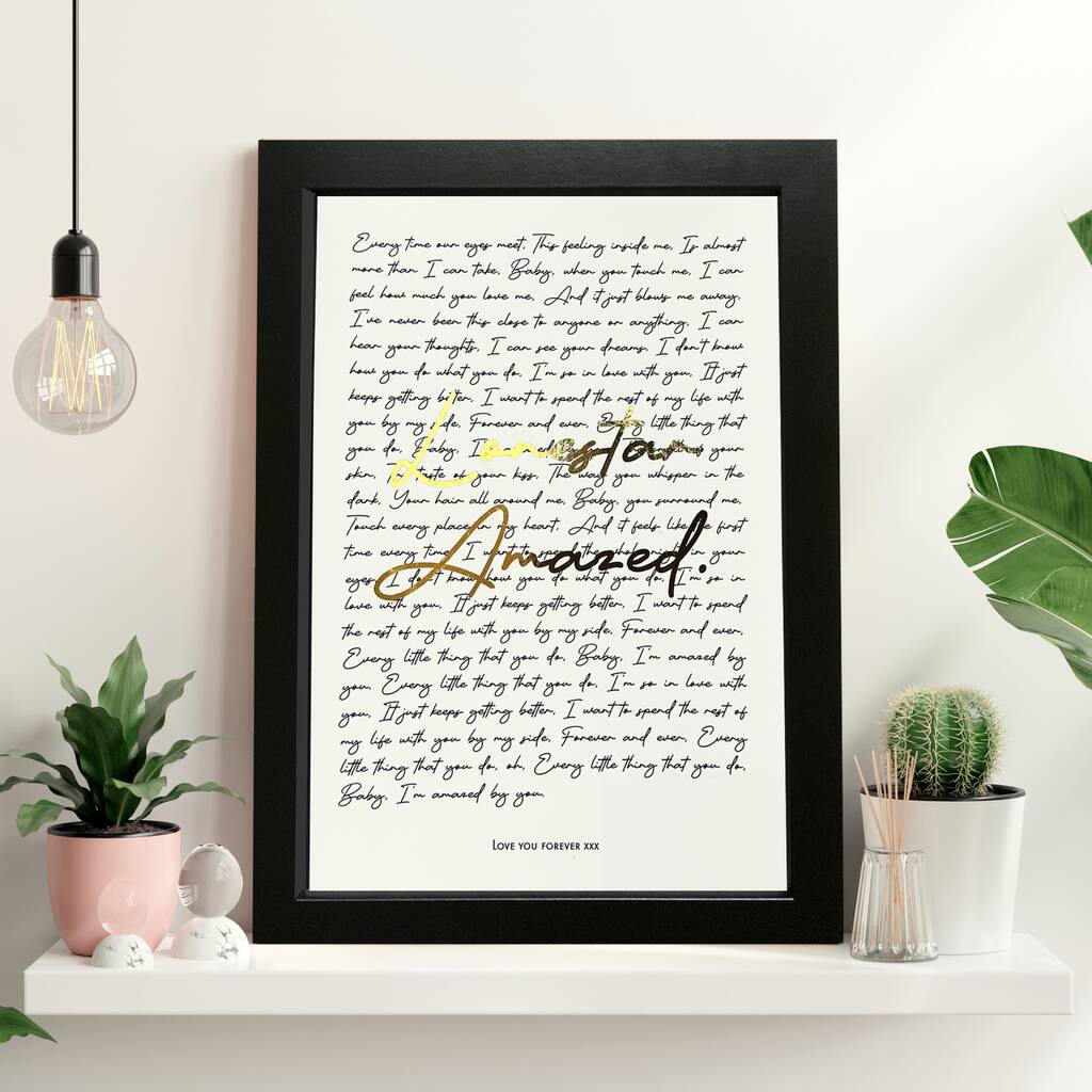 This metallic personalised handwritten song lyrics print has been thoughtfully designed and created with you in mind, by our hardworking loving team.