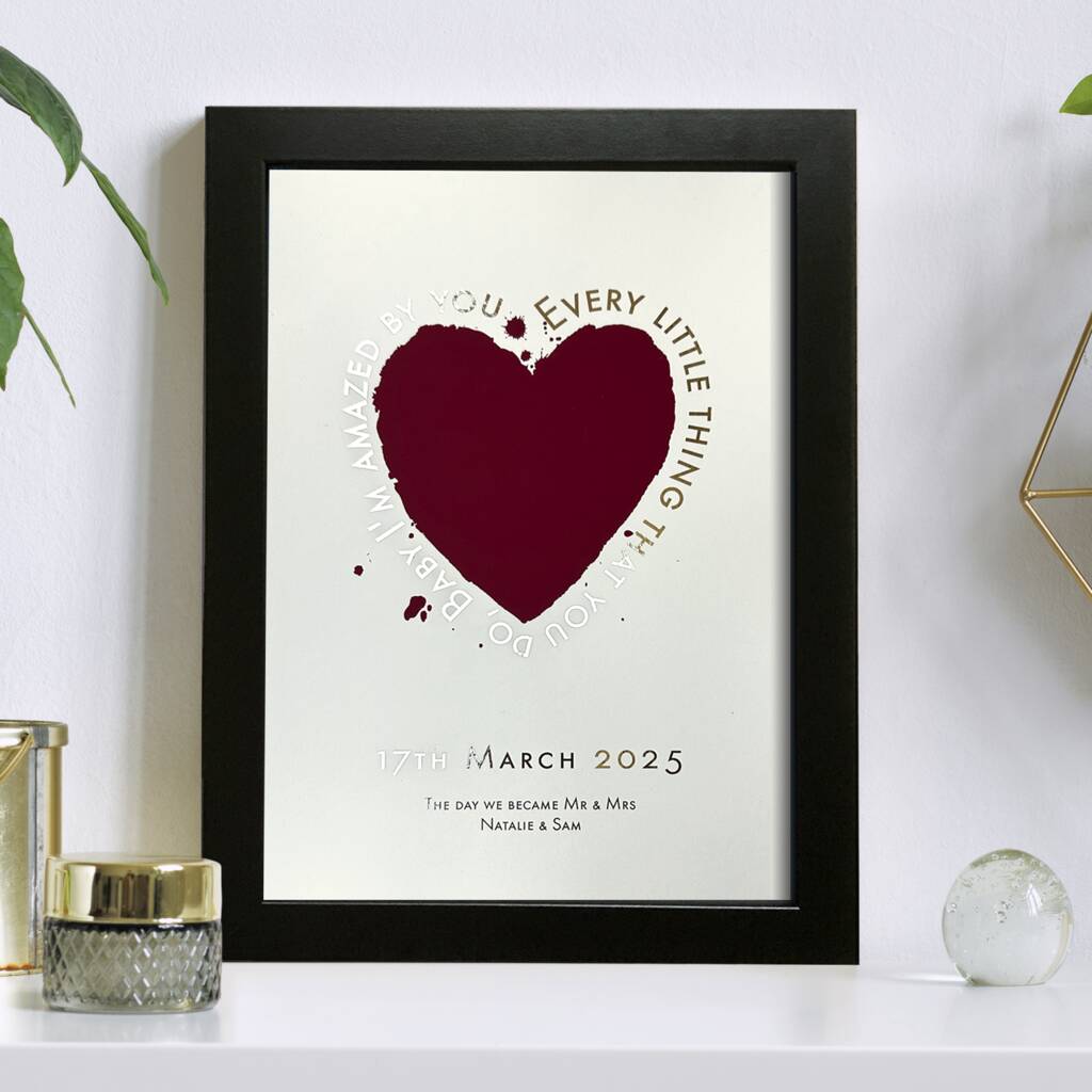Metallic Personalised Song Lyric Red Heart Print