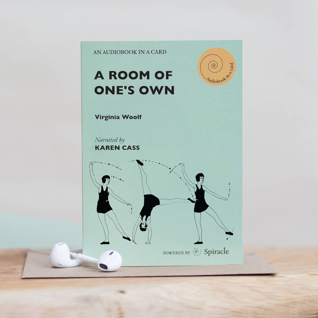 Virginia Woolf’s A Room of One’s Own, a touchstone of feminist thought, is now available as an Audiobook in a Card.