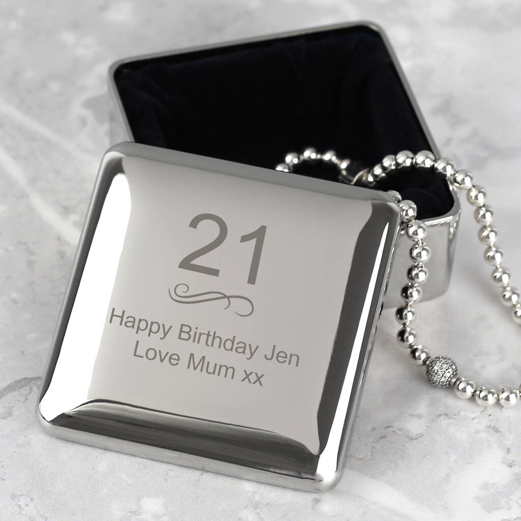 Personalised Birthday Age Silver Square Trinket Box 18th 21st 30th