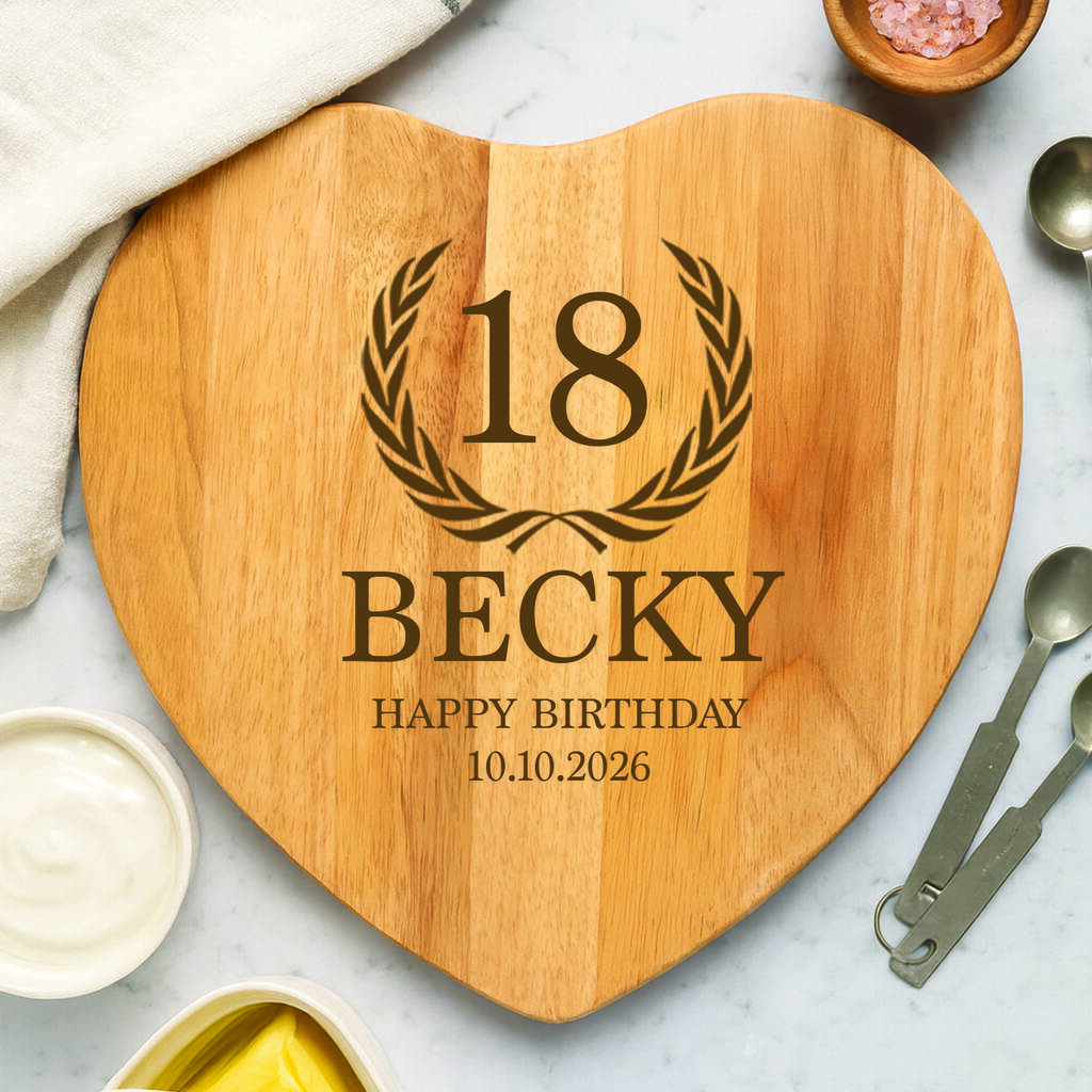 Personalised Birthday Crest Heart Wooden Chopping Board