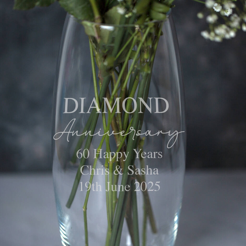 Personalised Glass Bullet Vase – 60th Diamond Anniversary Gift