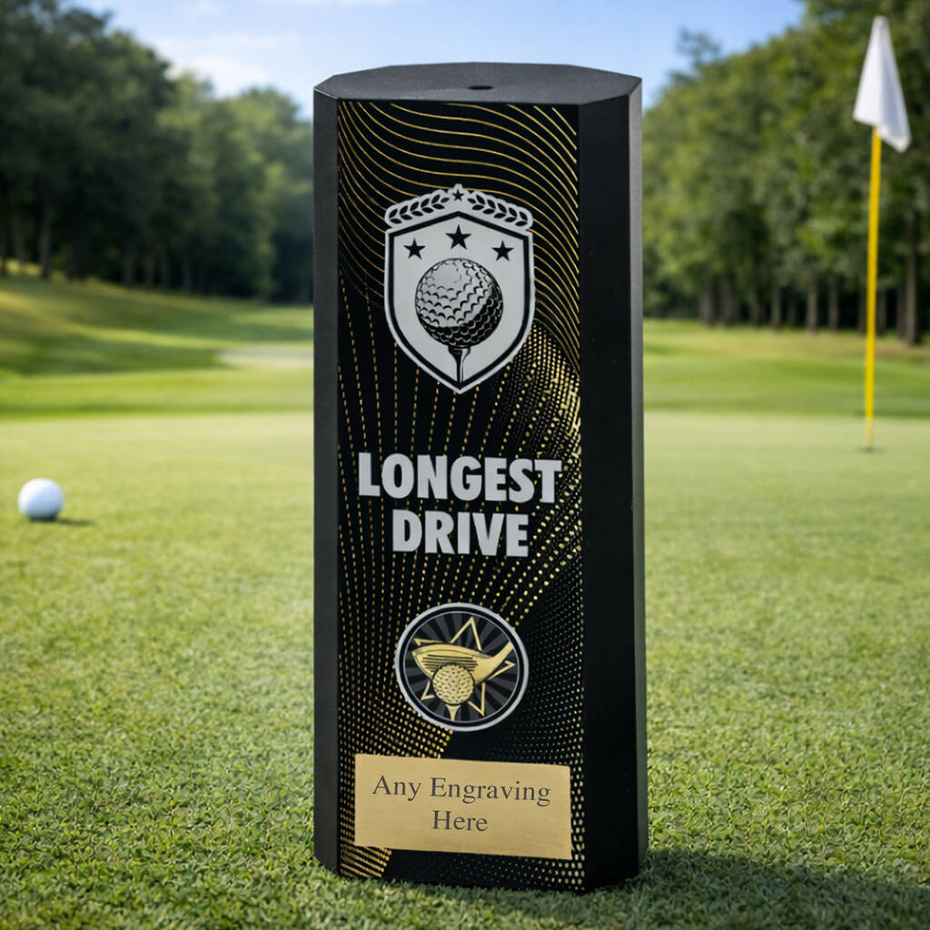 Personalised Longest Drive Golf Trophy – Black Column Award