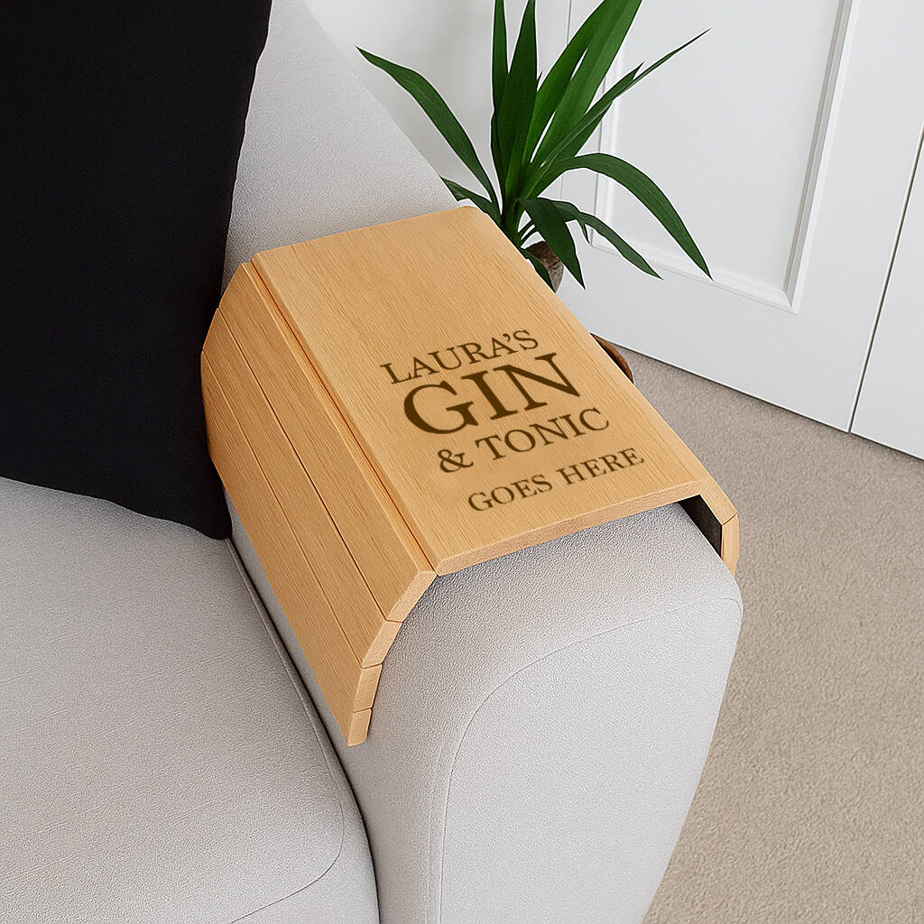 Personalised Wooden Flexible Sofa Tray Gin And Tonic