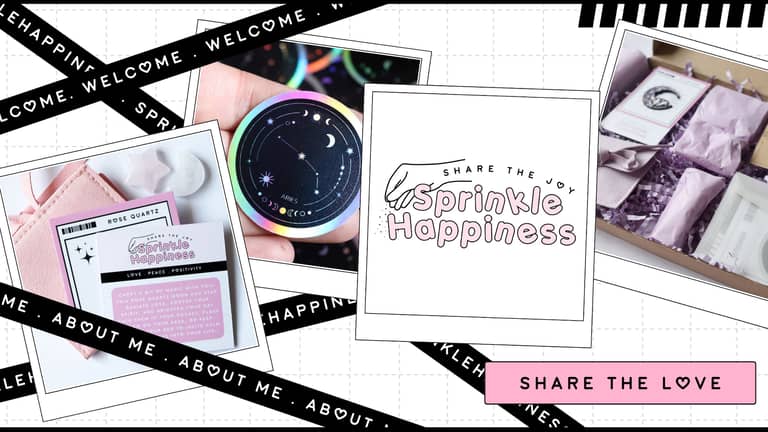I’m Sarah Evans, the heart and soul behind Sprinkle Happiness. After more than a decade of selling digital products, I finally turned my dream of selling physical creations into reality. As a creative business owner and a mother, I design and curate a range of unique treasures. From quirky stickers and crystal-themed gift boxes to jewellery, star sign prints, and accessories, every piece is made to evoke positivity and inspire spiritual connection.