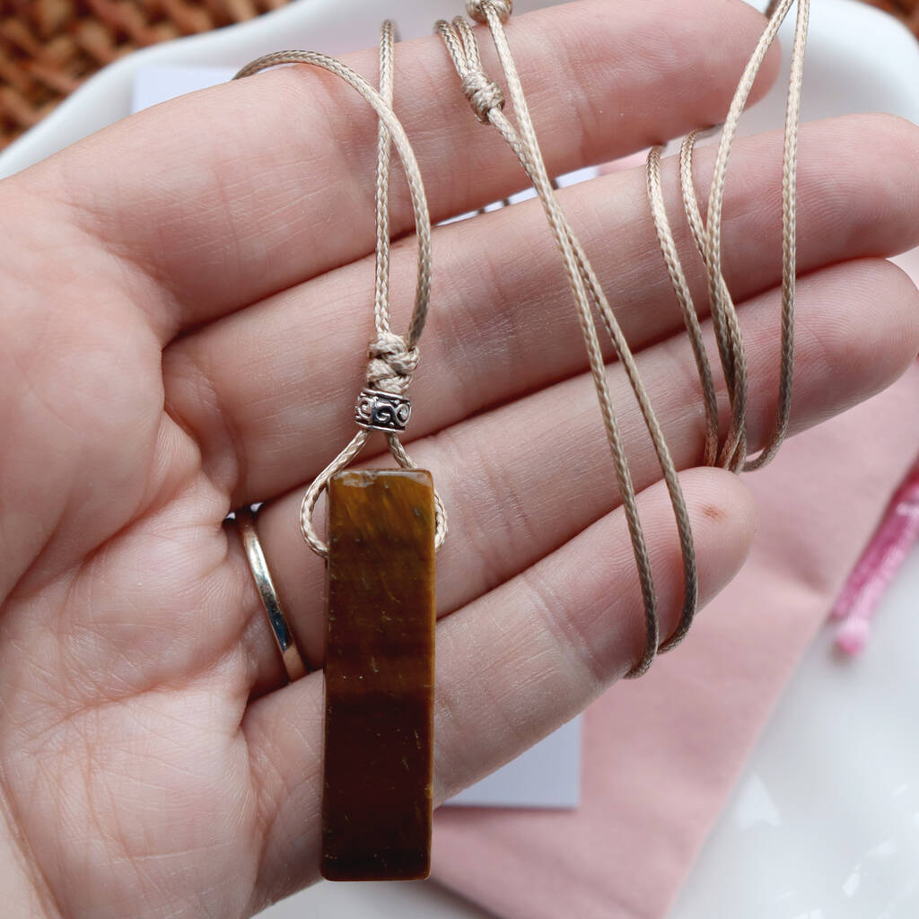 Adjustable Tigers Eye Pendant Necklace With Gift Bag