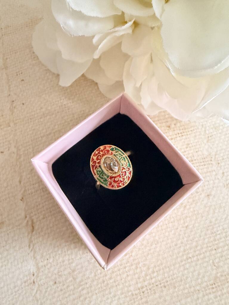 Antique Multicoloured Meenakari Gold Ring