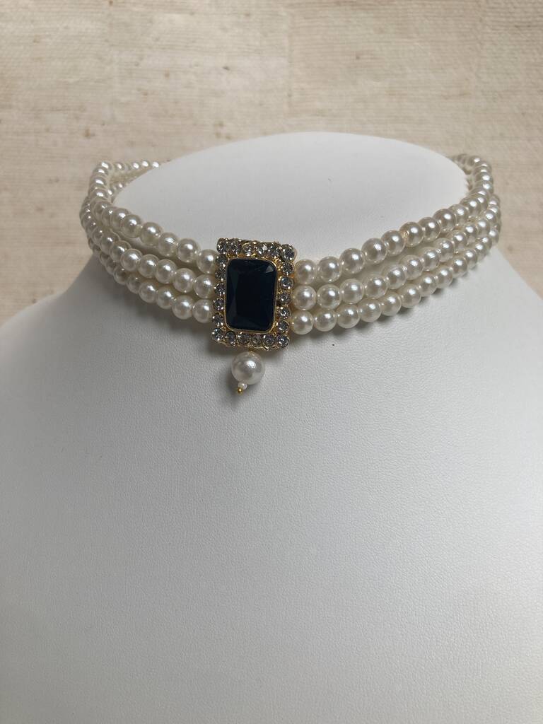 Black 18 K Gold Plated Pearl Indian Choker Set