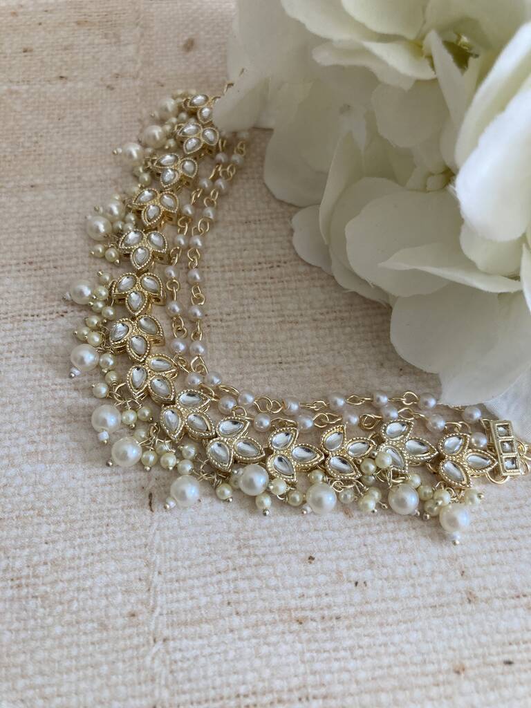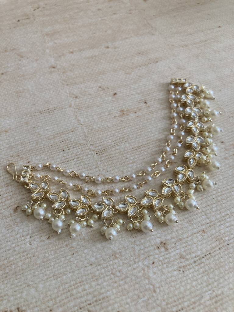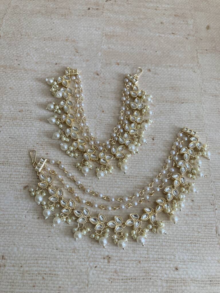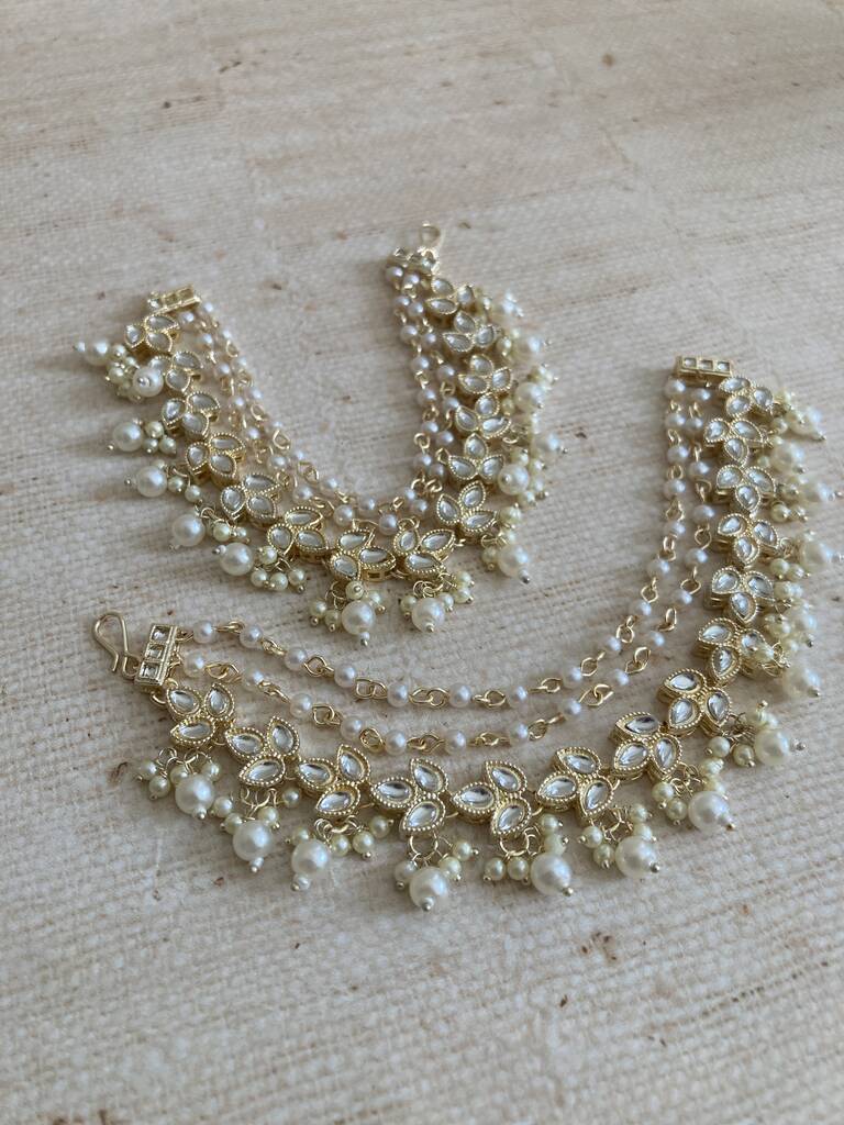 Gold Plated Pearl Indian Ear Chains/Kaan Chain