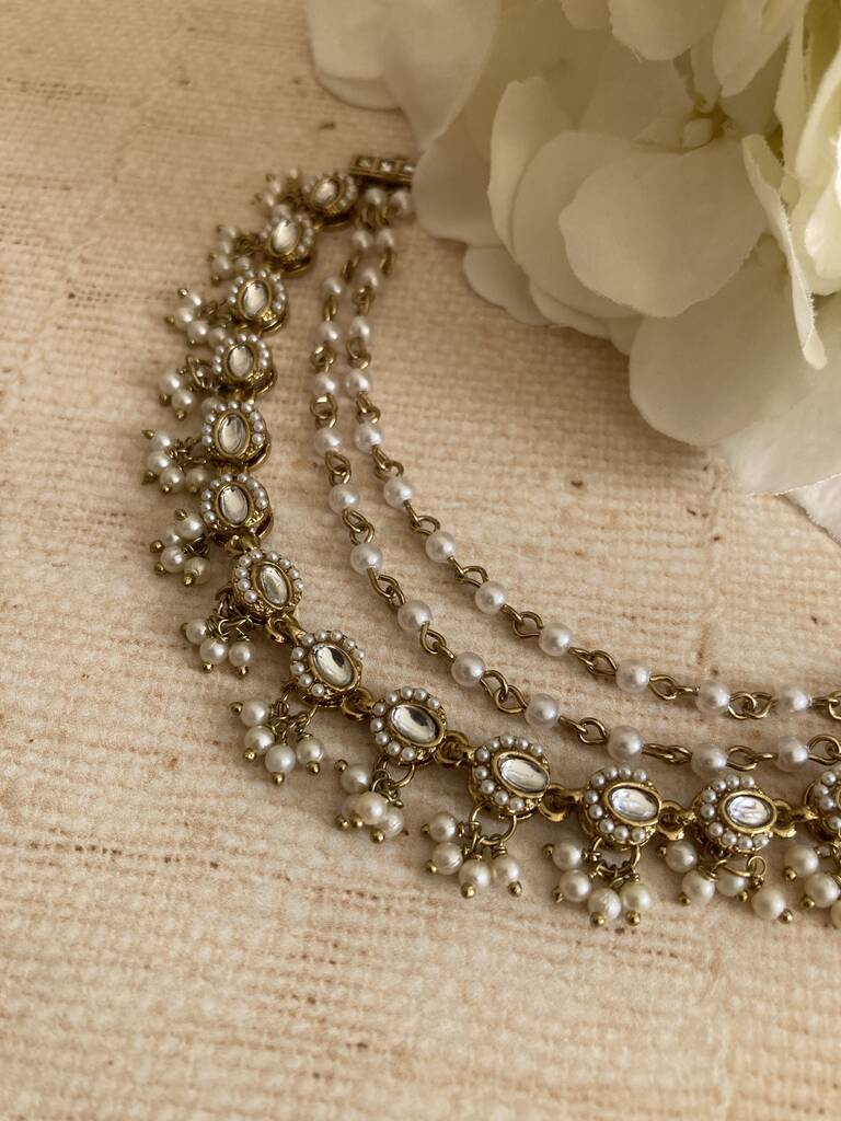 Indian Gold Plated Pearl Ear Chains/Kaan Chain