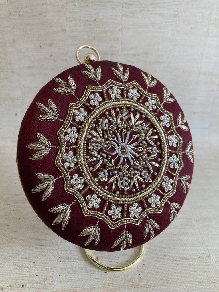Maroon Circular Handcrafted Clutch Bag