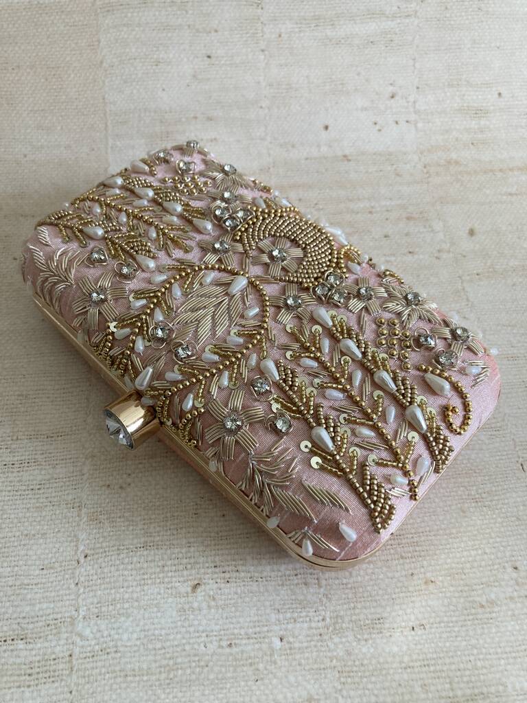 Pink Handcrafted Embroidered Rectangular Clutch Purse