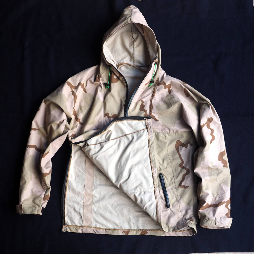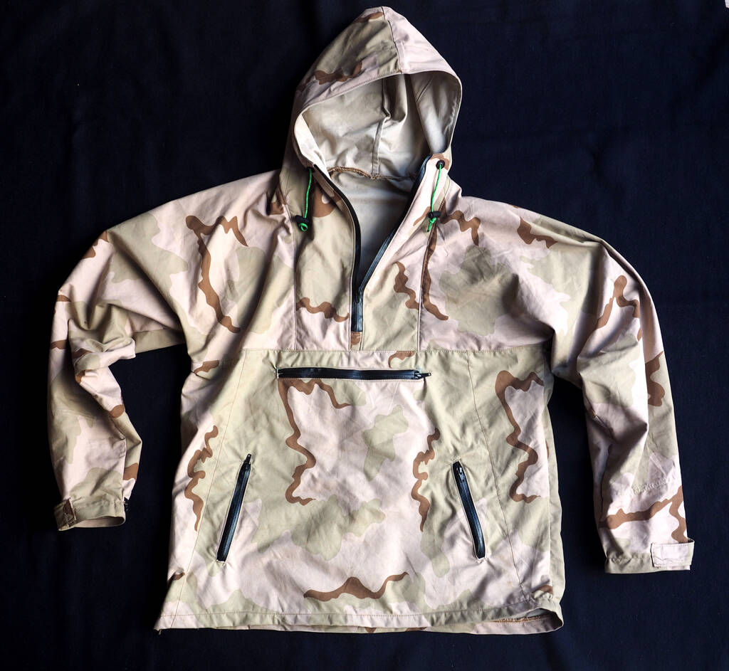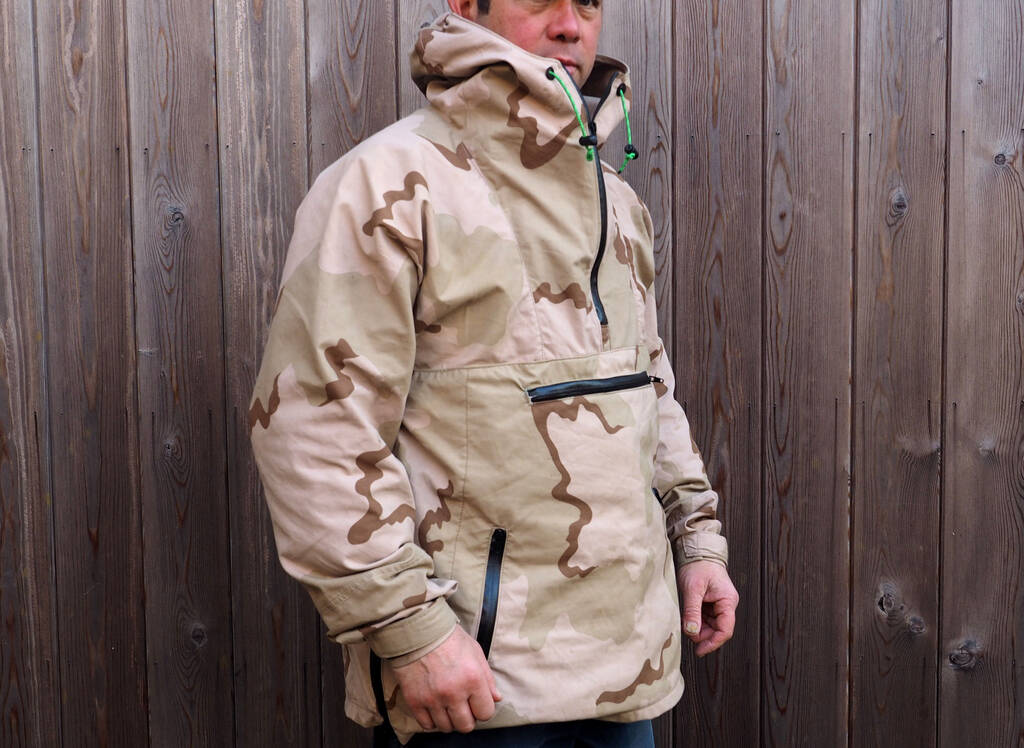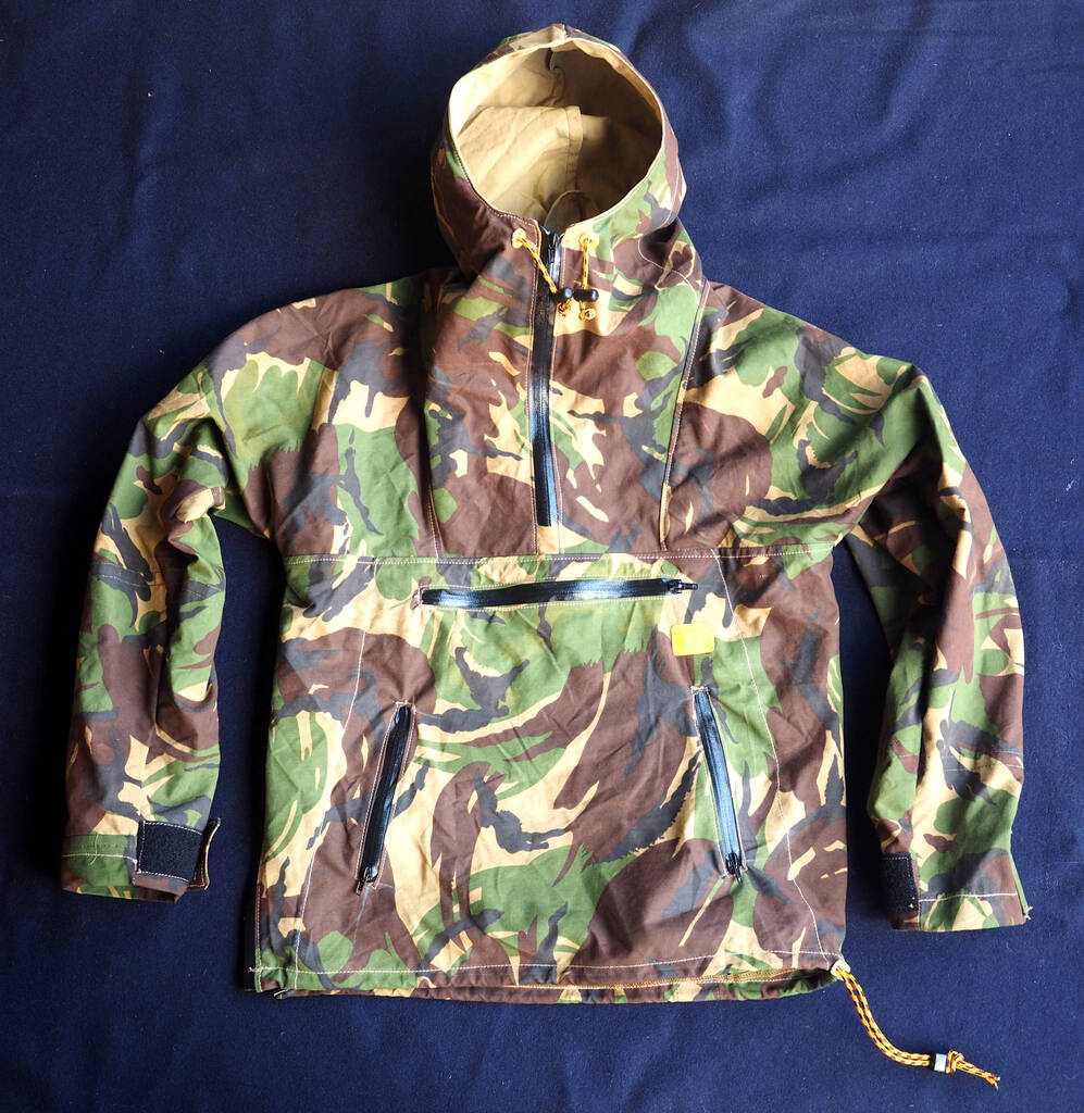Designed and made in Cambridge UK, our coats are recycled from army surplus tents. They are great for every day wear and for the great outdoors.We have used these jackets on walking, cycling and climbing adventures. They have proved to be windproof, waterproof and very breathable. The fabric performs like a heavy weight version of ventile material. This is a tightly woven dense un-coated cotton which relies on the tightness of the weave to stop water penetrating the fabric. Of course, prolonged drenching water will eventually saturate the fabric and seams. The Cags will give you many years of service, plus should they get damaged they can be repaired.We love the simple over the head design especially with the modern splash proof zips and colourful climbing cord. The jackets are available in a desert or woodland camouflage pattern. The design also incorporates a long zip up the side seam as well as draw cords around the waist and hood.As the jackets are made from recycled tents, we try to cut around any imperfections like stains or holes. However this may not always be possible and there may be evidence of a repair or mark. If you wish to have some extra material for future repairs, please send us a message when ordering. The Cags can be machine washed but we recommend not washing very often as each wash will cause some damage to the material and reduce its longevity.