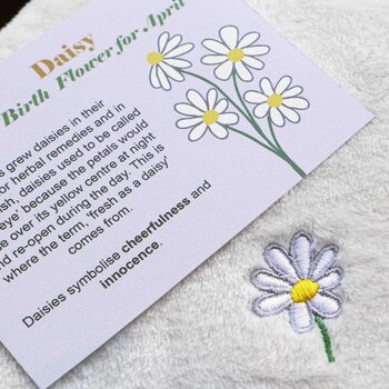 Each set is thoughtfully embroidered in Sussex by Stephie with a unique birth flower, making it a truly special gift. Birth flowers hold personal significance – for example, the narcissus for December symbolises optimism and abundance, while the carnation for January represents affection and devotion. card explaining the meaning of the chosen birth flower is included. You can personalise the pyjamas with an embroidered letter in a matching colour next to the flower.