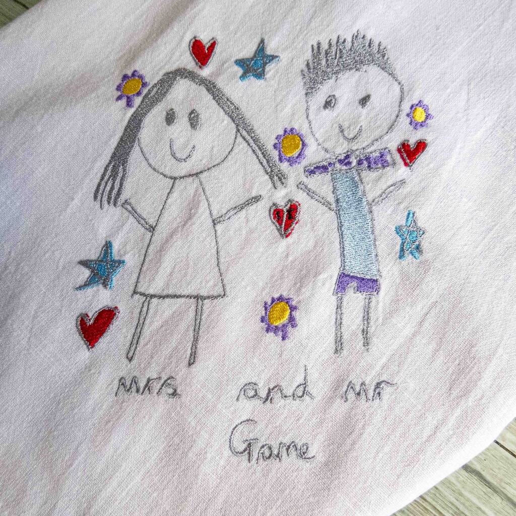 Turn your child’s artwork into embroidered keepsake napkins — a personalised gift for grandparents, godparents, mums, Dads or teachers. A creative kids' art gift.