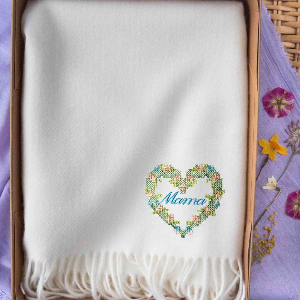 Personalised Cross Stitch Cashmere Scarf Gift For Mum