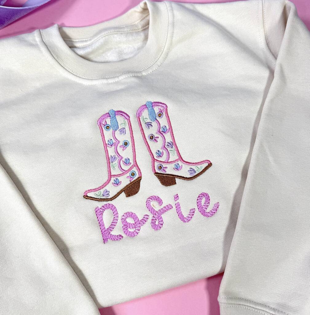 Floral Cowboy Boots Name Personalised Embroidered Sweatshirt