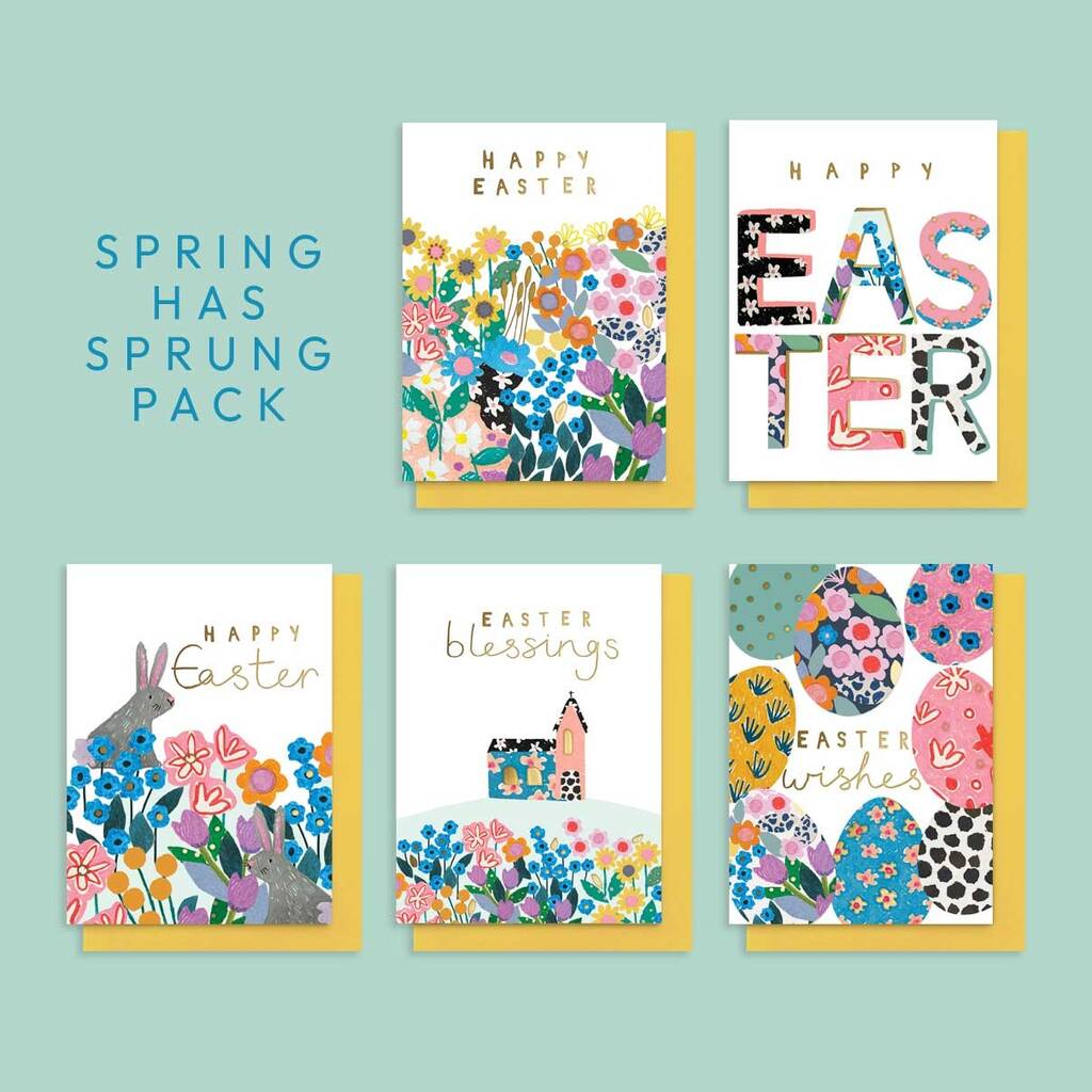 Spring Has Sprung Pack Of Five Mixed Easter Cards