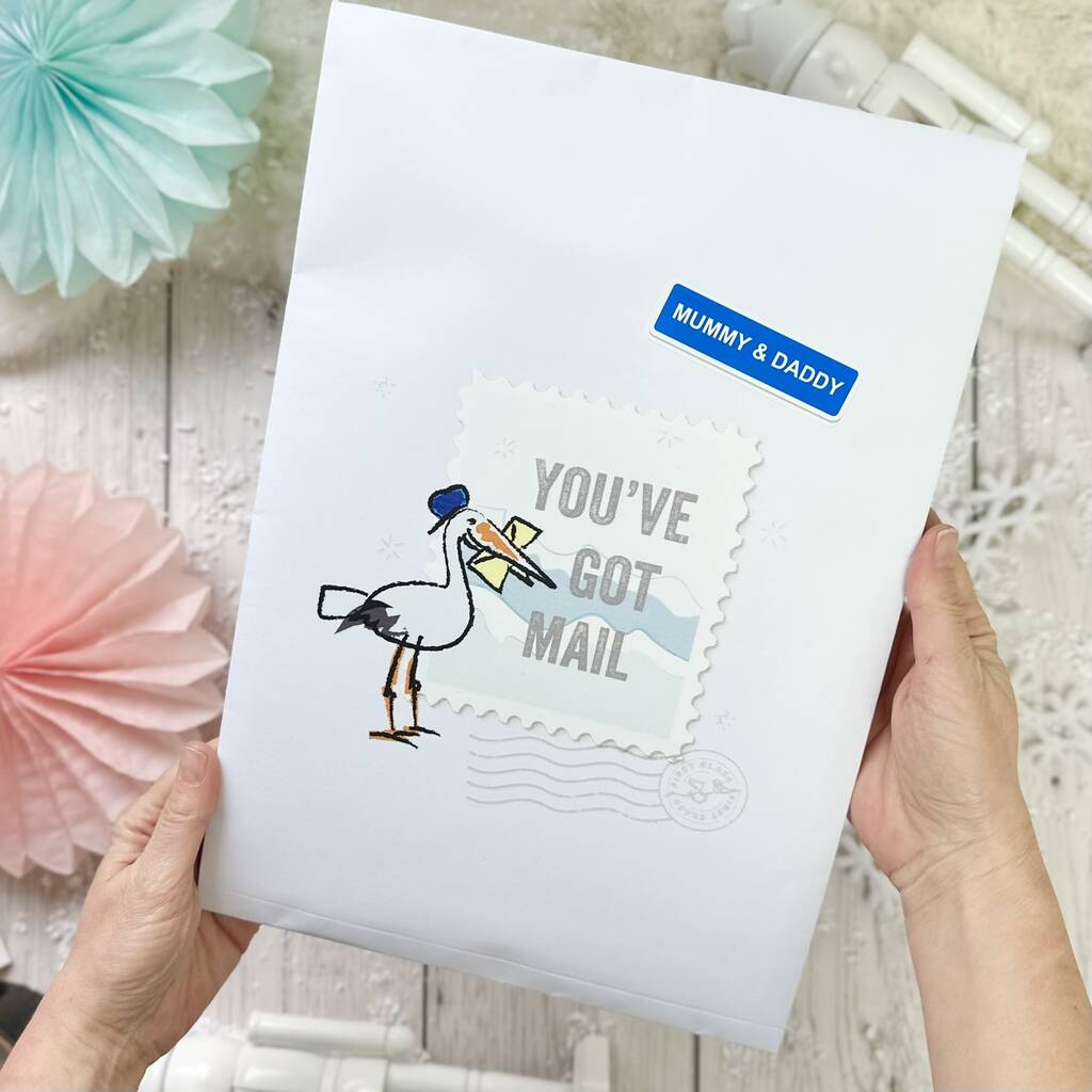 Stork mail messages are lovingly received and printed “Your postcard can be personalised with whatever message you wish, or you can choose from one of the examples in the pictures.