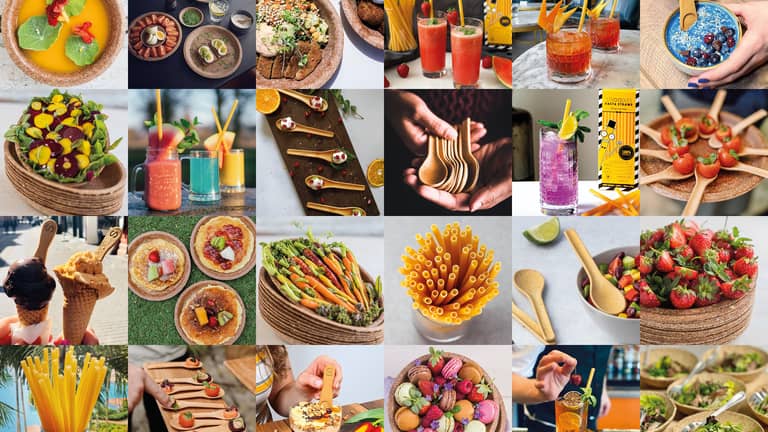 All our products are 100% biodegradable and good for the planet. And you can even munch on them after use, as they are all edible. Our pasta straws are made from wheat + water only, plates and bowls from 100% wheat bran, the spoons are like a biscuit and the cup is from wafer.