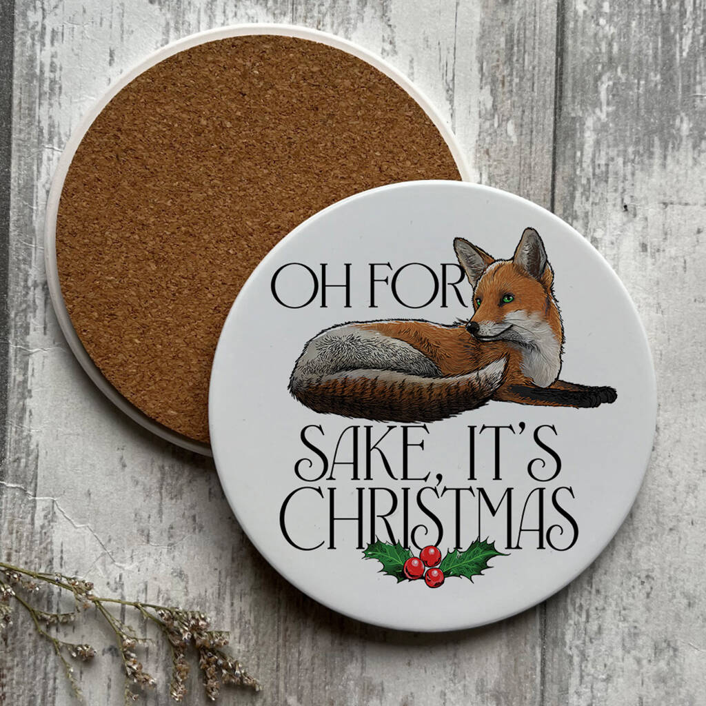 Wild Giggles For Fox Sake It's Christmas Ceramic Coaster