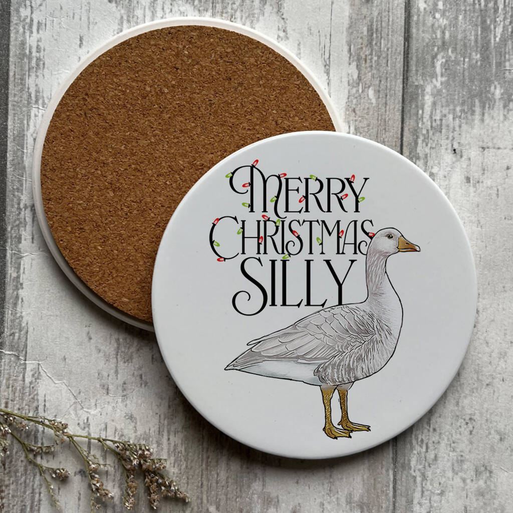 Wild Giggles Merry Christmas Silly Goose Ceramic Coaster
