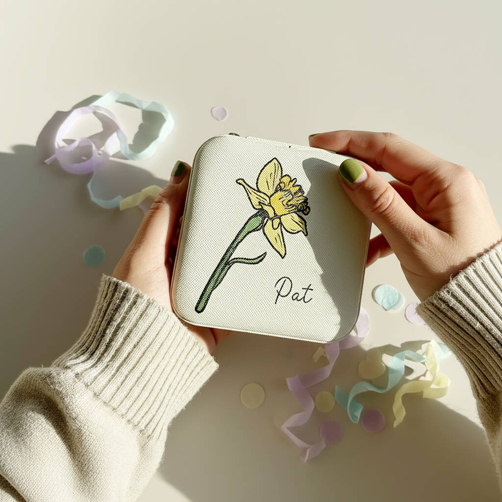 Personalised Birth Flower Jewellery Organiser – March Birth Flower Birthday Gift For Her