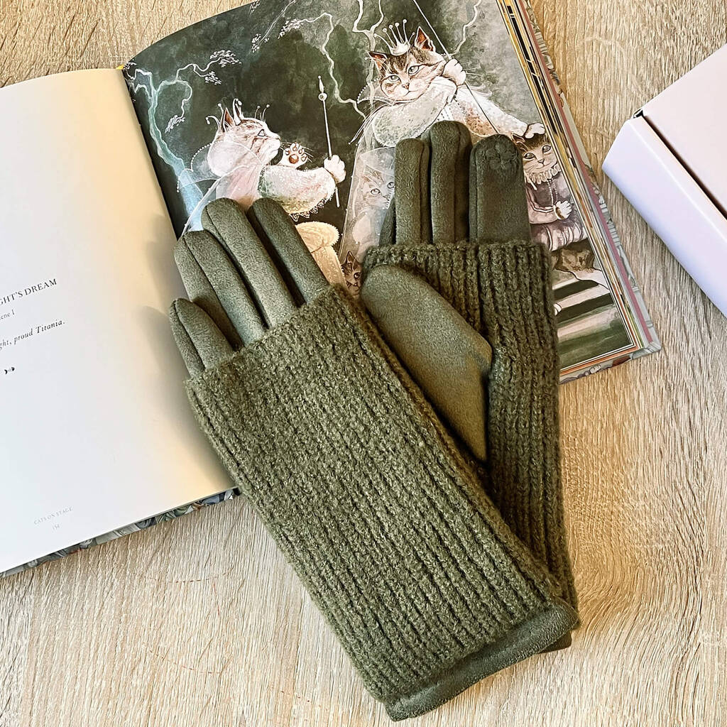 Suede Touch Screen Gloves With Knitted Cuff