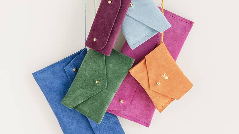 We make personalised leather and suede accessories, all designed and made with functionality in mind. We use the offcuts to make smaller items to minimise waste. Shop our collection of purses, glasses cases, jewellery pouches, along with knitting and sewing notions pouches and earrings made with the scraps.