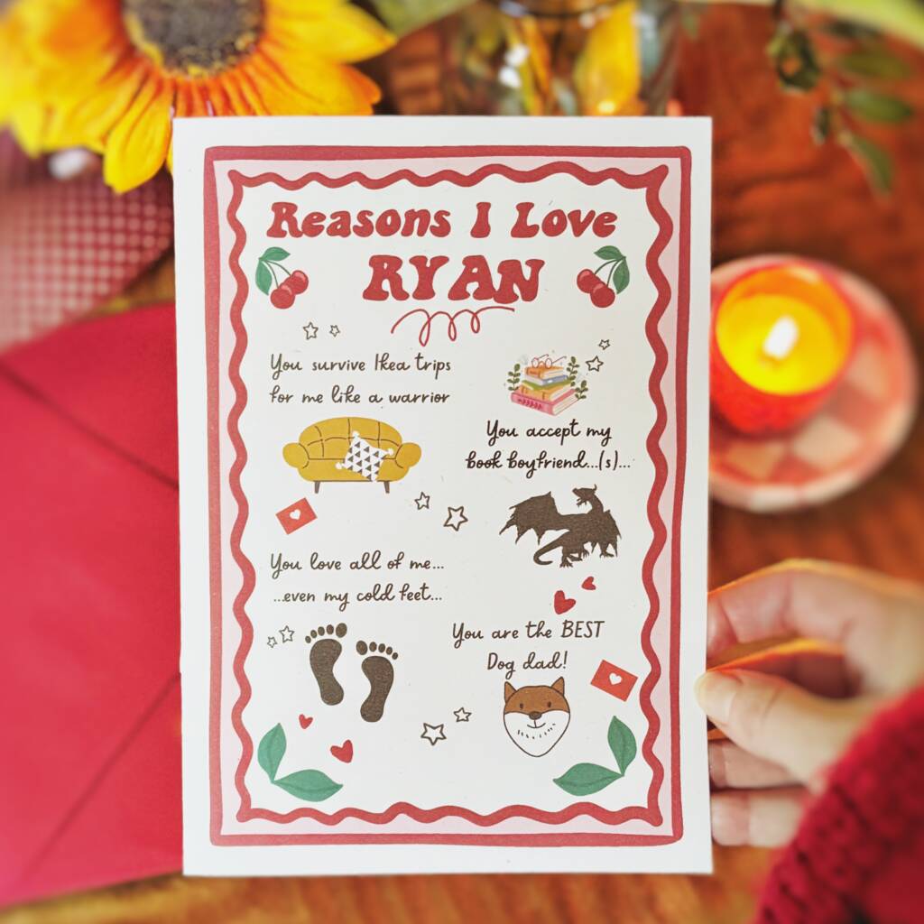 Silly Or Serious Reasons I Love You Personalised Card, Recycled