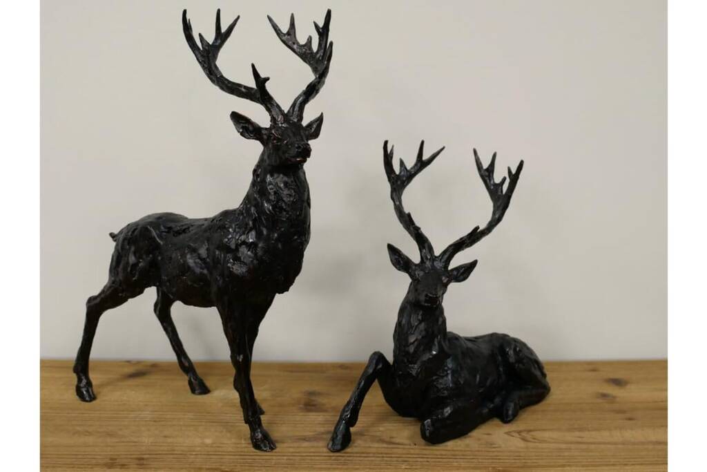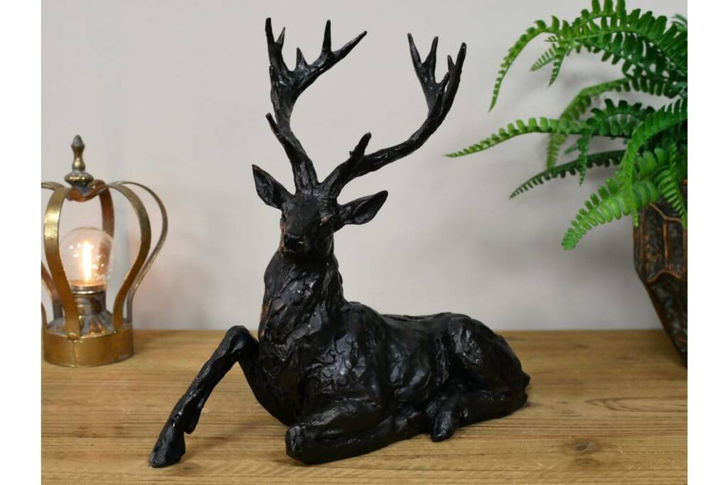 30cm Sitting Stag Bronze Effect Ornament Figurine Gift